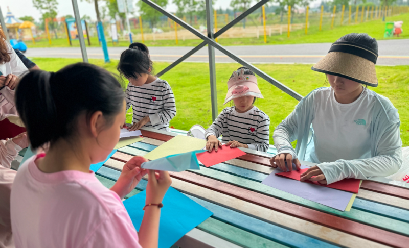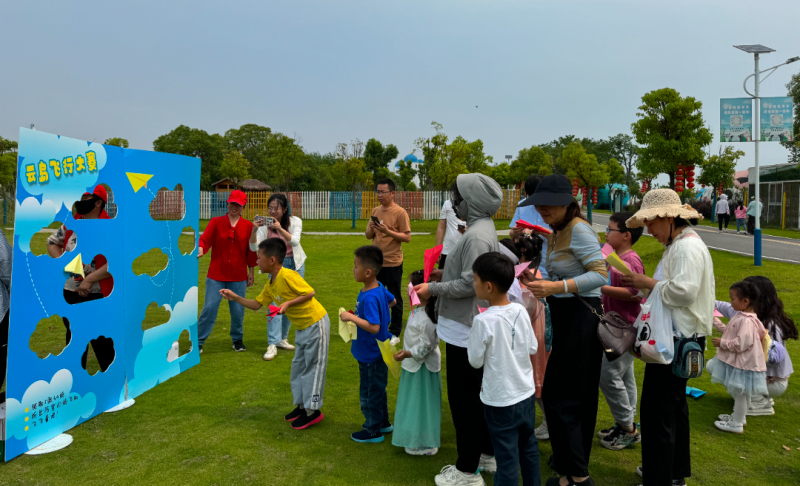 “我们都是小青蛙咕咕咕咕咕,喜欢快乐地生活,最爱说笑话;我们都是小青蛙呱呱呱呱呱,每天快乐地唱歌,心中志气大。不做懒惰之蛙!不做井底之蛙!好好学本领来把害虫抓……”伴随着“破冰”热身操,孩子们熟络起来;“爸爸,你看,那是孔雀,我们书里有……”“妈妈,你看,大飞机,我马上能上去坐坐嘛……”环园小火车上,孩子们“叽叽喳喳”地跟家长们探讨着所见所想;云岛飞行大赛中,孩子们与家长使出浑身解数,折叠出认为操作感最佳的纸飞机,哈气、抛出,一条条完美的弧线在飞跃中呈现;无动力乐园内,或是丛林探险,或是秋千,或是攀岩,或是欢乐碰碰车,欢声笑语此起彼伏。