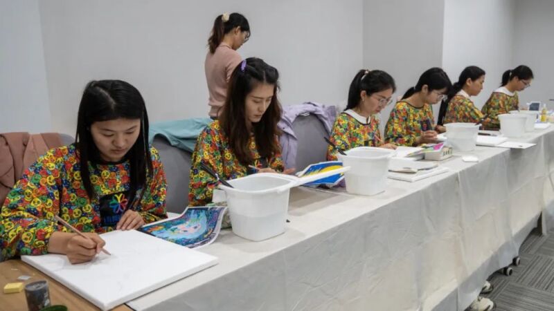 而在绘画教室里,则是另一番宁静而美好的景象。学员们手持画笔,用心勾勒着自己心中的世界。色彩在画布上流淌,创意在笔尖下涌动。他们用画笔描绘出大自然的美丽、生活的温暖以及梦想的绚烂。这里没有喧嚣,只有画笔与纸张的轻声细语,每一幅作品都承载着学员们的独特情感和无限想象力。(来源:团聚新高)