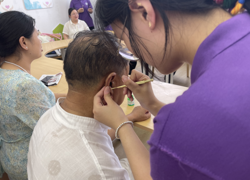 祥龙社区联合泰州职业技术学院医学系,开展了中医耳穴埋籽活动,吸引了众多居民参与。活动现场,医学院的老师为辖区老人们详细讲解了耳穴埋籽的原理、方法和效果,讲述了中医耳穴压豆、耳部刮痧等日常护理方法。老师还带领老人们做耳保健操,远离耳部疾病的困扰。“没想到,小小的耳穴也有这么大的学问!”在场的老人们纷纷表示,这次学会了耳穴保健操,以后就可以自己在家边看电视边按摩了。