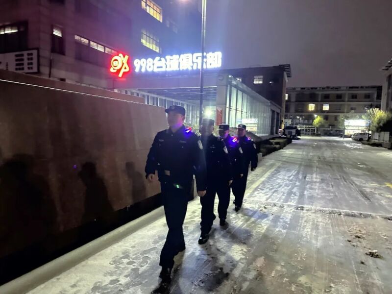 2月22日晚,泰州市公安局医药高新区分局(高港分局)永安洲派出所积极应对雨雪冰冻天气,组织民辅警在辖区重要路段加强道路巡逻值守工作,及时排查安全隐患,确保道路通畅。