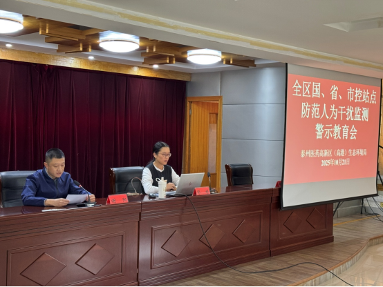 10月21日下午,泰州医药高新区(高港)生态环境局组织召开全区国、省、市控站点防范人为干扰监测警示教育会,学习传达省、市有关会议精神,明确各级党委、政府责任,在全区范围内坚决杜绝发生人为干扰行为。