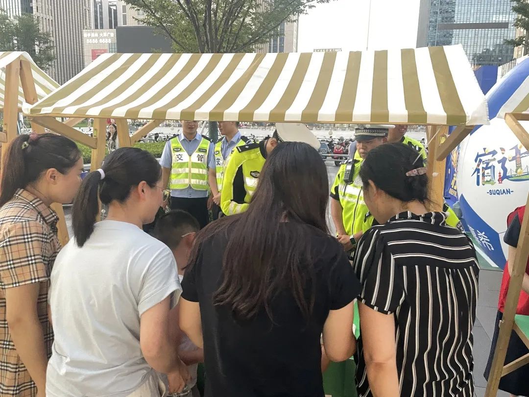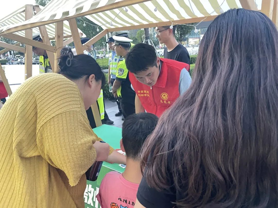 交警叔叔化身志愿者,开设交通安全体验角,通过本地交通法规有奖问答、儿童头盔佩戴实操、模拟路口指挥游戏等互动,强化家庭出行安全意识,筑牢文明交通防线。