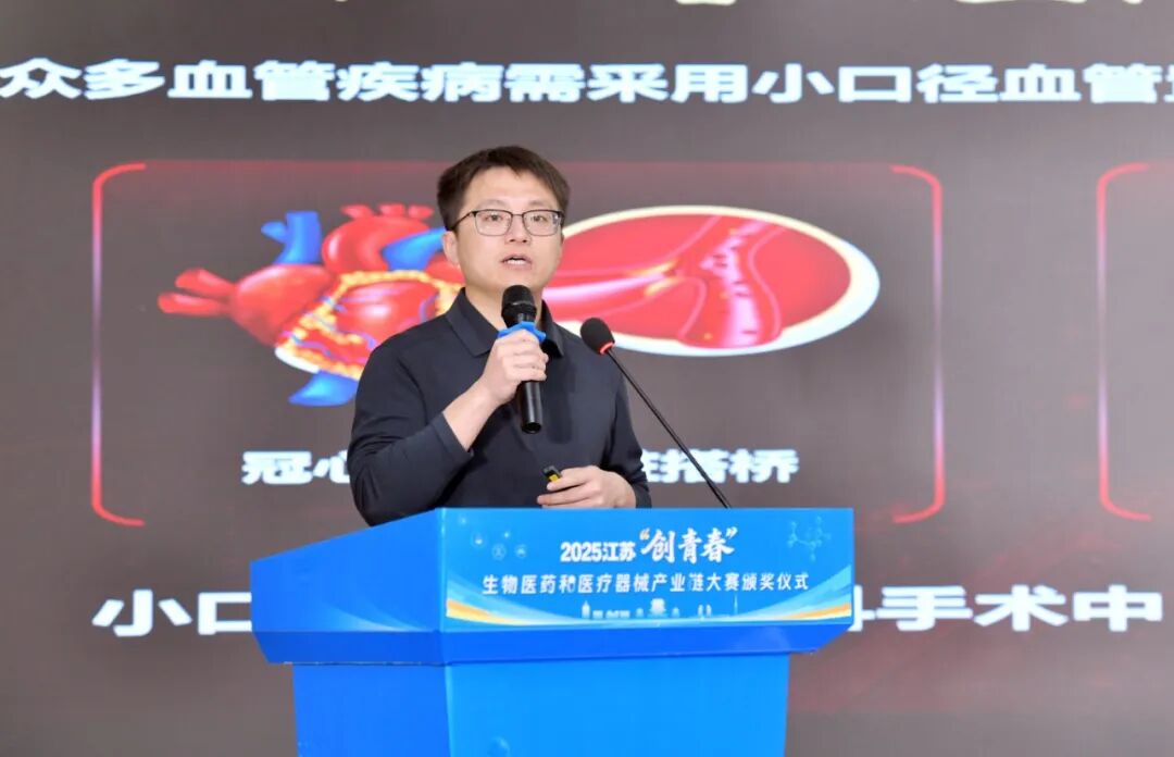 医药高新区党工委副书记、管委会主任,高港区委副书记、区长丁志强在致辞中表示,作为全国首个医药类国家级高新区,泰州医药高新区专注发展生物医药产业,通过集聚高端人才、转化高端成果、落户高端企业、发展高端产业,形成“4+2”产业体系,集聚了1300多家生物医药企业,综合竞争力连续3年居全国生物医药园区前十强。当前,医药高新区持续打造更具活力的创新生态,积极构建更加开放的发展格局,全力营造更有温度的人才环境,致力让青年朋友的工作生活更美好。诚挚邀请广大青年才俊选择高新、扎根高新,成为这片机遇涌动、尊重创造的热土上的“创新合伙人”与“奋斗同行者”,共同谱写生物医药产业高质量发展的新篇章。 ▲团省委副书记李晓明为一等奖获奖项目颁奖 ▲市委组织部副部长黄新华、团省委青发部副部长王克竞为二等奖获奖项目颁奖 ▲医药高新区党工委委员、高港区委常委、组织部部长冯海镛,团市委书记钱琨为三等奖获奖项目颁奖 《心脉联衢—全球首款体内可视化小口径人工血管》等4个项目进行现场签约,将在中国医药城的沃土上开启产业化新征程。 活动现场,生物医药产业园投资促进中心主任贾冬杰作中国医药城主旨推介。 产业链重点企业扬子江药业集团进行企业推介。 市产业技术研究院深度解读了“拨投结合”机制在泰州的创新实践、成功案例与未来规划。 泰州医药高新区华银金融投资有限公司分享了产业资本构筑生物医药创新生态的生动实践。 荣获本届大赛一等奖的李双阳团队进行了《心脉联衢——全球首款体内可视化小口径人工血管》项目路演。该项目拟于明年一月份正式落户中国医药城。 本次大赛聚焦生物医药和医疗器械产业,汇集全国近50个项目,经角逐12个项目入围决赛。作为2025江苏“创青春”产业链大赛的精彩呈现,这也标志着泰州青年创新创业服务进入新阶段。下一步,我市将持续搭建“产学研用”一体化平台,支持青年在产业关键领域创新突破,为推进中国式现代化江苏新实践挺膺担当!