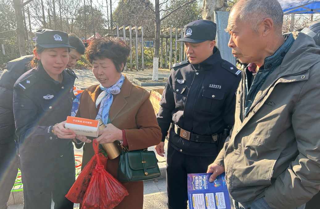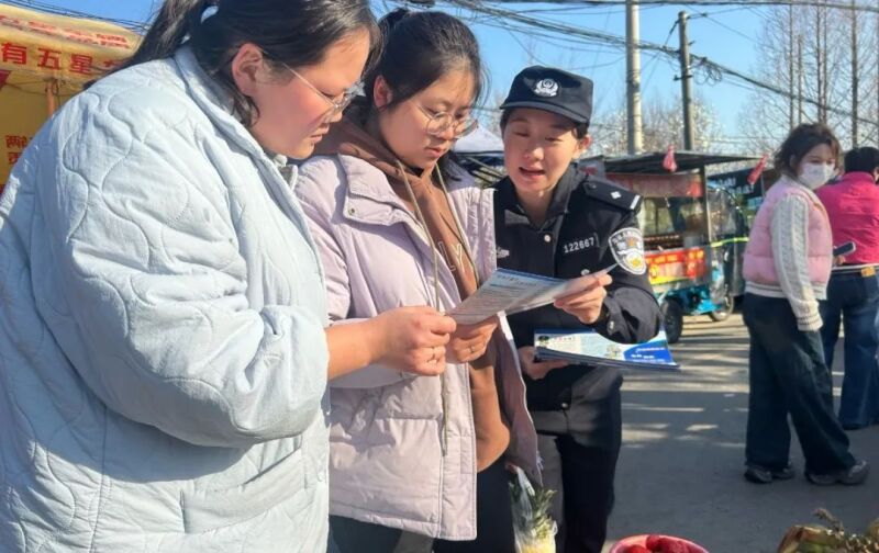 3月18日下午,许庄派出所民警走进庙会,通过现场宣讲、发放宣传单等方式,面对面向群众宣传诈骗犯罪分子的惯用手法、作案方式等。“烟火气”十足的方式,为传统民俗增添平安“警”色。