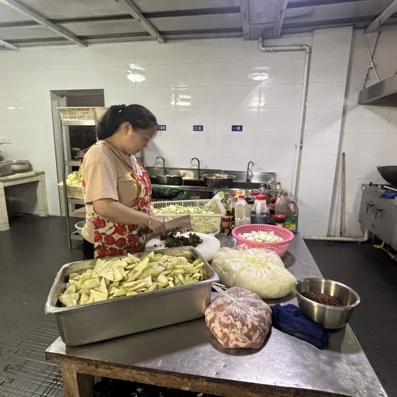 早餐结束后,食堂的工作人员便马不停蹄地开始了午餐的准备工作。