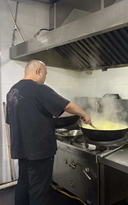 陈云霞在中午开餐前,她认真地将拖把洗净、拧干,拖地,不放过任何一个卫生死角,为大家提供一个整洁干净的就餐环境。李小平则专注地在洗菜区洗菜,一筐筐新鲜的蔬菜在她的手中被仔细清洗,每一片菜叶都被冲洗得干干净净,确保吃到的每一口菜都安全、健康。而霍建红正在认真地备菜,将各类蔬菜、肉类有条不紊地切配好,为大厨杨穗的烹饪做好充足的准备。10点半左右,大厨就站在了灶台前,为午餐的烧制做准备。新鲜的食材在他熟练地操作下,逐渐散发出诱人的香气。