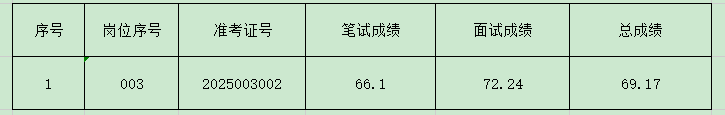 因003岗位考生(准考证号:2025003006)自愿放弃体检资格,根据《泰州市寺巷水务有限公司招聘简章》有关规定,现在报考同岗位的考生中按总成绩从高分到低分的顺序递补体检人员(名单详见附件)。体检具体时间另行通知,请保持通讯畅通。