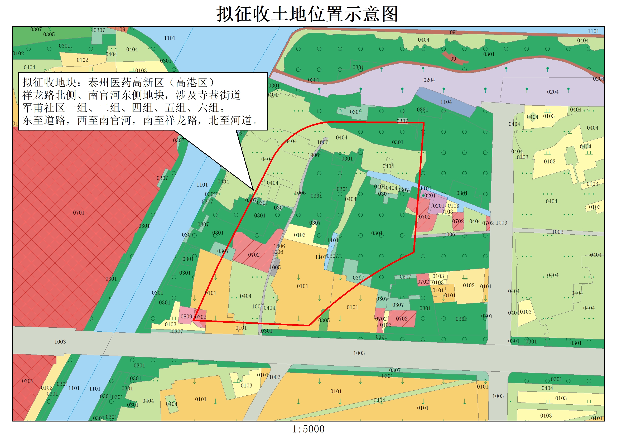 本次拟征收土地位于寺巷街道军甫社区一组、二组、四组、五组、六组。拟征收土地位置详见附图。