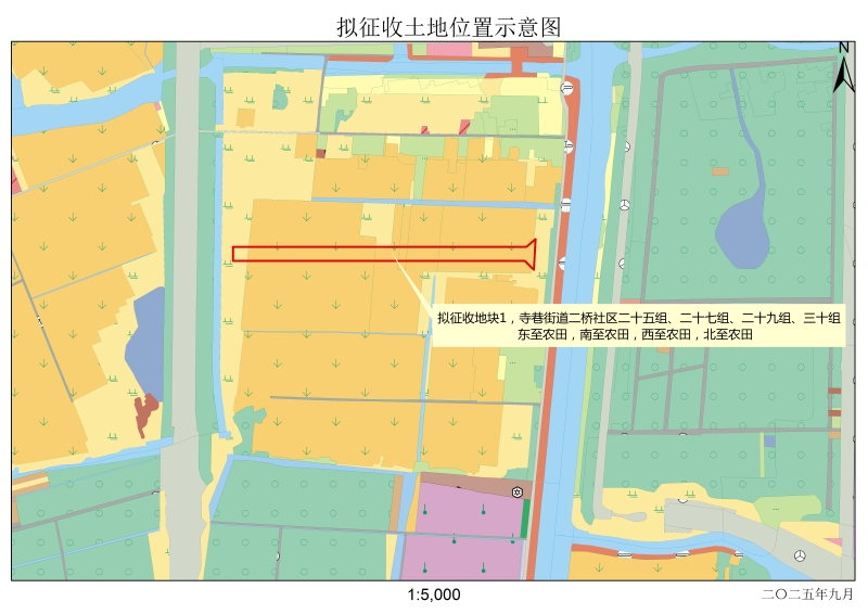 本次拟征收土地位于寺巷街道二桥社区二十五组、二十七组、二十九组、三十组。拟征收土地位置详见附图。