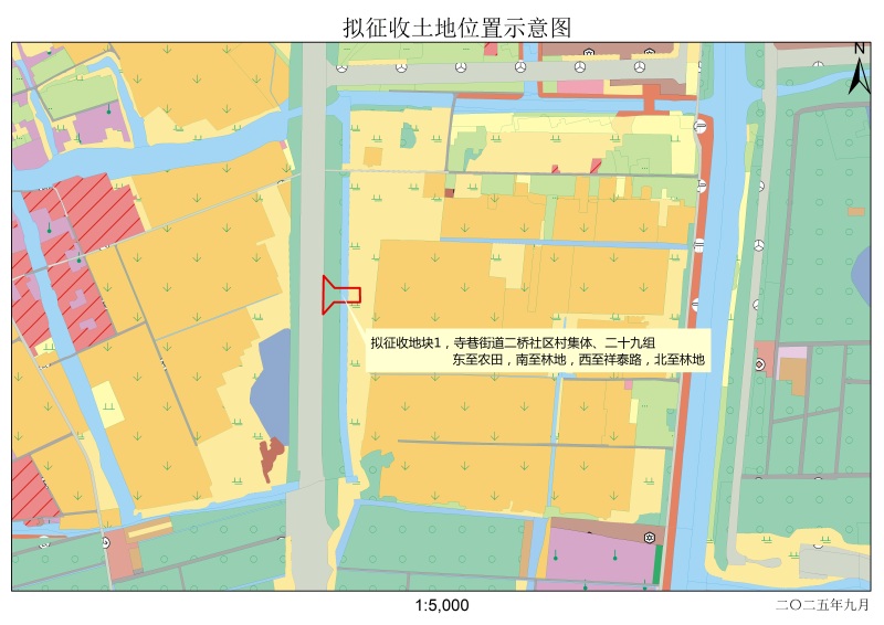 本次拟征收土地位于寺巷街道二桥社区二十九组、村集体。拟征收土地位置详见附图。