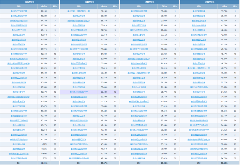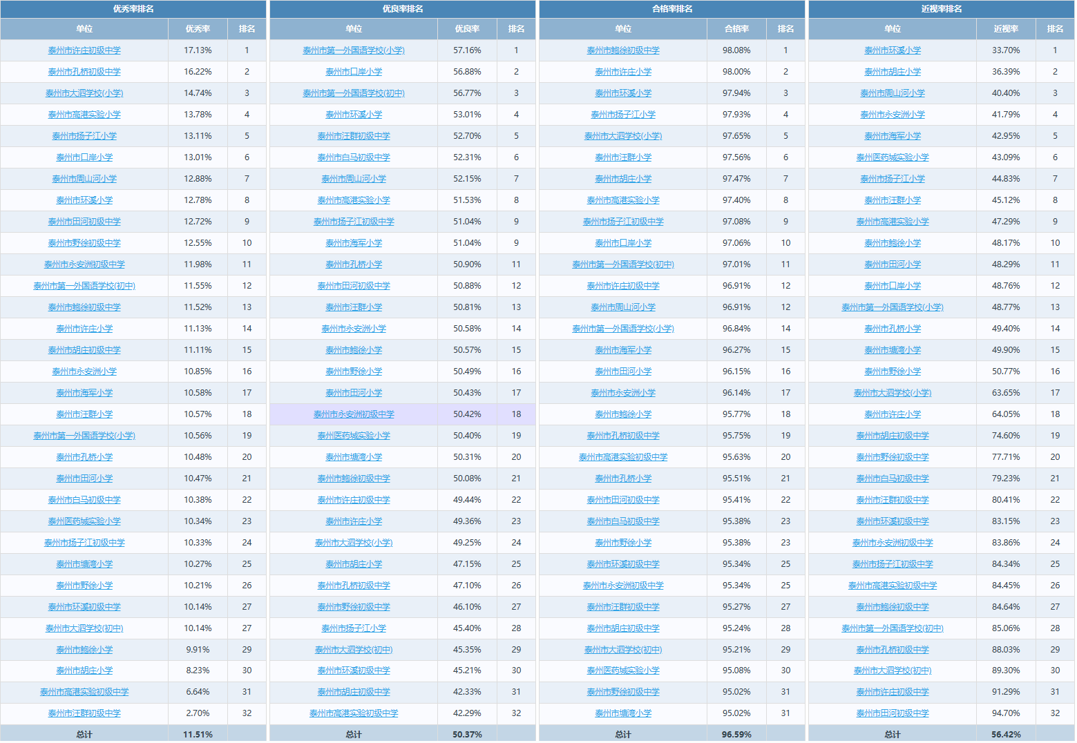 2025年度江苏省泰州市高港区学生体质健康、近视率排名公示