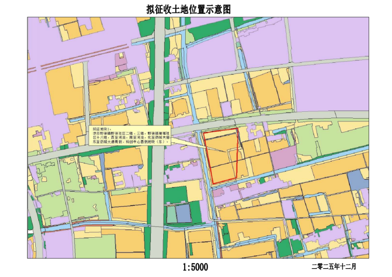 本次拟征收土地位于野徐镇野徐社区二组、三组,野徐镇褚雅社区十八组。拟征收面积5.0824公顷,拟征收土地位置详见附图。