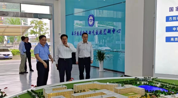 在赣江中药创新中心,叶冬华一行听取了中心的发展介绍,详细了解中心的未来研究方向。